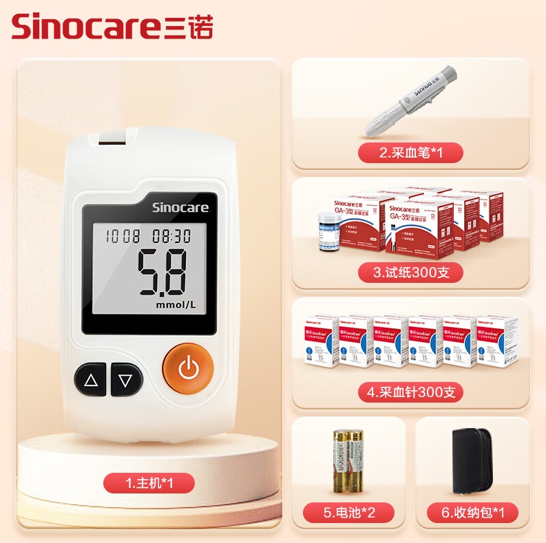 • 商品名称:三诺GA-3血糖仪家用高精准测血糖仪器医用级检测仪300支试纸套装