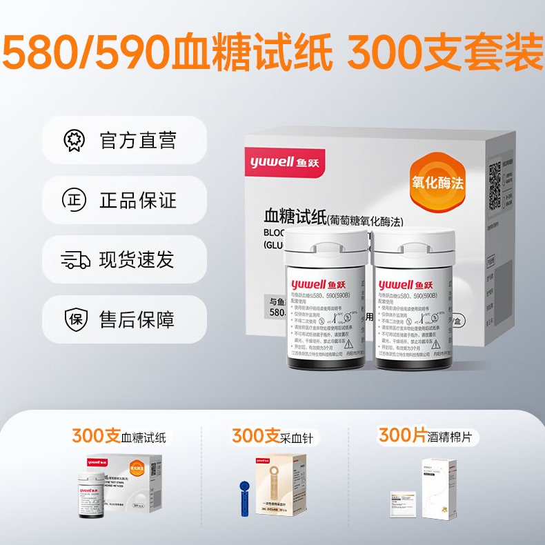 鱼跃580/590血糖仪家用全自动免调码【无仪器+300试纸+300采血针】